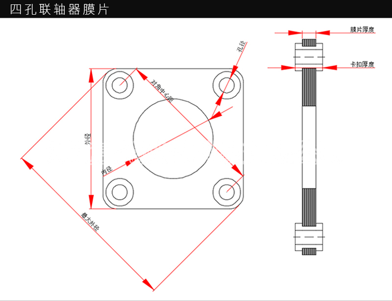 4孔不锈钢膜片轴系的传动系统:轴系传动通常由一个或若干个4孔不锈钢膜片将主、从动轴连接起来,形成轴系传动系统,以传递转动或运动。4孔不锈钢膜片主要是由于电动机、减速机及工作机的轴连接,其轴孔形式、连接形式及尺寸主要取决于所连接轴的型式及尺寸,产品设计时一般按圆柱形和圆锥形轴深标准设计轴,轴深标准是针对轴的设计。各种不同形式的金属4孔不锈钢膜片在结构设计和系列设计时,以传递转矩的大小、4孔不锈钢膜片的结构和轮毂强度为依据,确定个规格金属4孔不锈钢膜片的轴孔范围以及轴孔的长度,每一种规格只有一种轴孔的长度。在,4孔不锈钢膜片的企业在不同4孔不锈钢膜片的标准中,均是每一规格4孔不锈钢膜片的一种轴孔长度。由于GB/T3852的误导,致使我国的4孔不锈钢膜片产品标准中每一规格随着轴孔的变化都对应有多种轴孔的长度,将4孔不锈钢膜片标准转化为我国标准时也加上多种轴孔长度,似乎只有这样才算是转化。